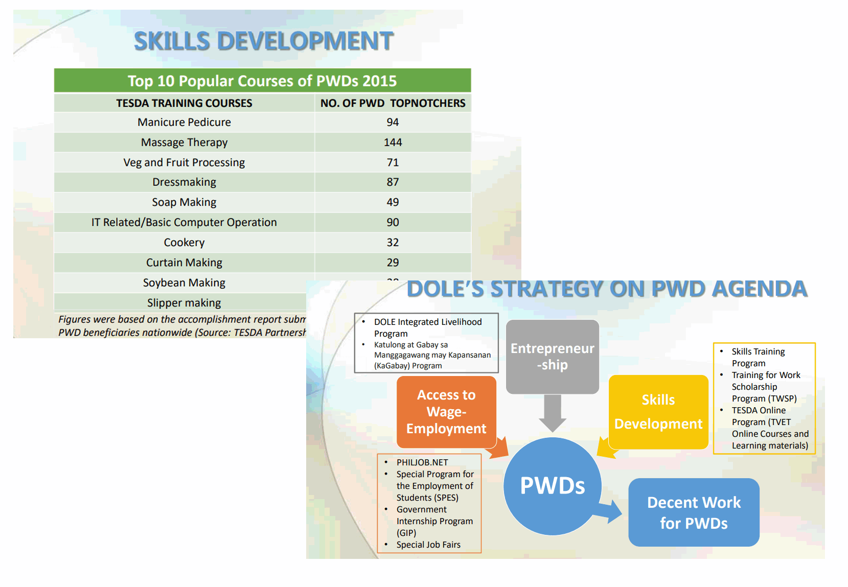Academic and training Institutions use Tracer Studies to evaluate and enhance existing programs and procedures based on information gathered from various stakeholders. Since the TESDA Womenâs Center (TWC) aims to be a le...